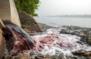 Pollution from textile production—dyes, chemicals, and heavy metals like lead and cadmium—is common in the waters of the Buriganga River as it runs through Dhaka,
