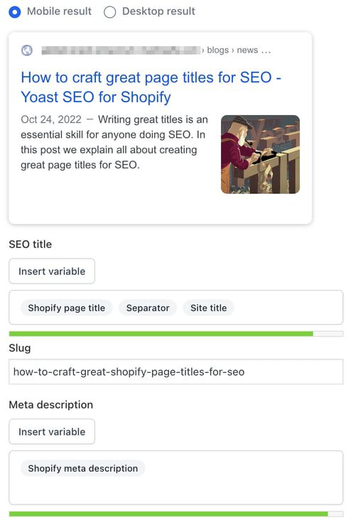 If your SEO title doesn’t have the correct width, parts of it may be cut off in Google’s search results. The result may vary, depending on the device you’re using. That’s why you can also check how your SEO title will look in the mobile and desktop search results in the Search appearance section of Yoast SEO. The tool defaults to the mobile version, but you can also switch to view it in the desktop version.