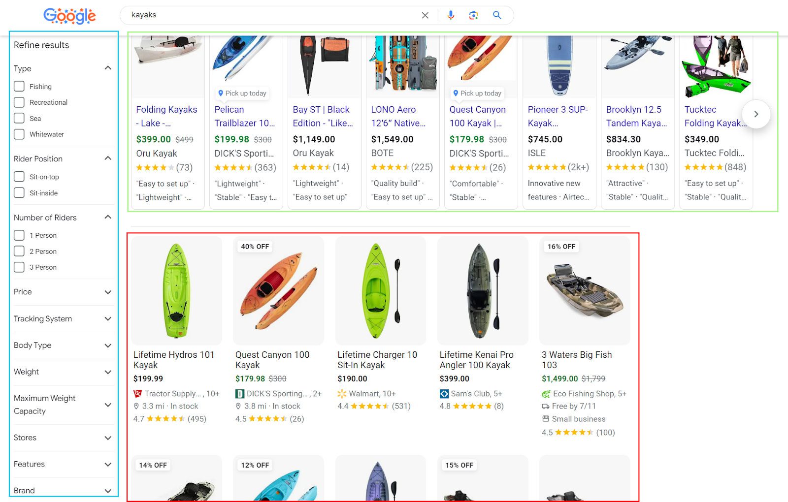 Say you are looking for kayaks (summertime!).