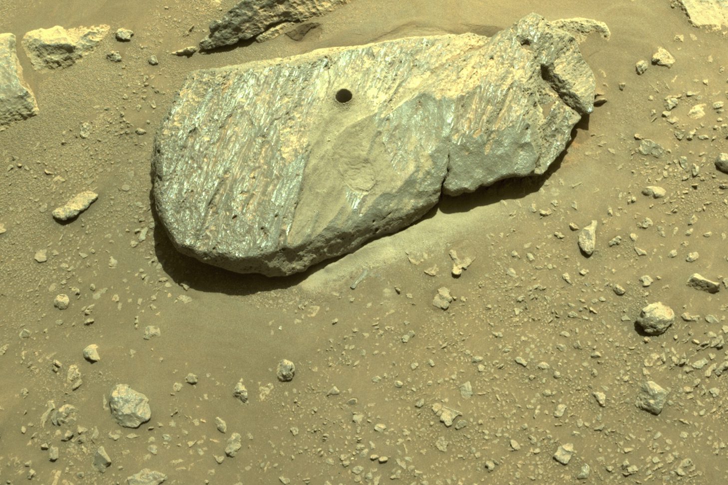 Scientists have long possessed several Martian meteorites that have been flung our way, but none of them are pristine; they were all damaged by cosmic radiation midflight, before getting scorched in Earth’s atmosphere. Plus, there’s another problem: “We currently have no rocks from Mars that are sedimentary, the rock type likely to contain fossils,” says Sara Russell, a planetary scientist at London’s Natural History Museum.